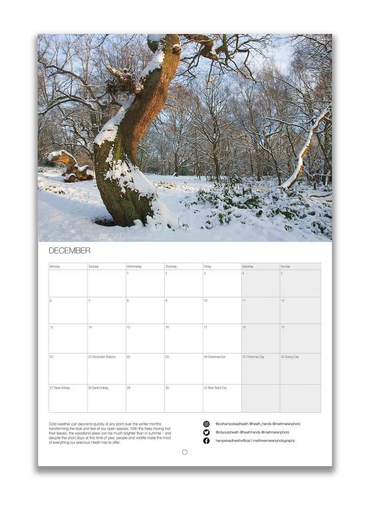 Back for the sixth year in a row (and still only £10!) the all new 2023 Hampstead Heath Calendar features a new selection of images and the best images from the hardback book - Hampstead Heath, London's Countryside. The calendar is a collaborative production between Matthew Maran Photography, Heath Hands and the City of London.